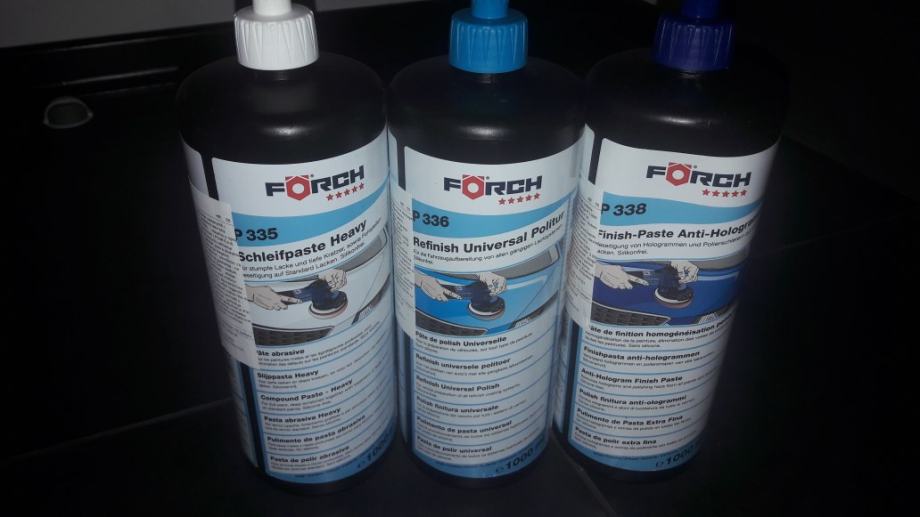 Prodajem set novih, ne korištenih pasta za poliranje automobila, proizvođač forch, u setu su gruba, fina i završna, prodajem isključivo komplet, cijena 450 kn za 1 set, 800 kn za 2 seta i fiksna je.