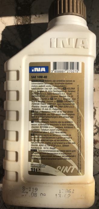 INA Delta Sint SAE 10W-40 motorno ulje sintetičke osnove vise od0,3lit