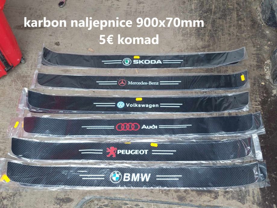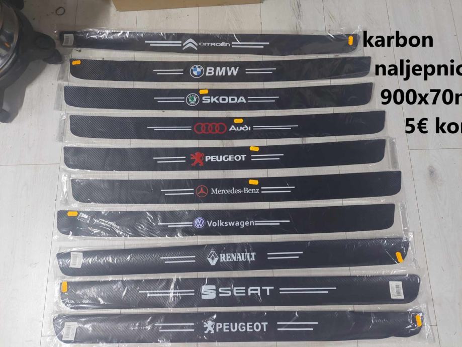 prodajem karbon naljepnice duzina 90cm sirina 7cm ljepe se na zadnji branik gore ili na lajsnu kad se otvori gepek imam za vozila:skoda,mercedes,volkswagen,audi,peugeot,renault,citroen,seat i bmw cijena 5€ komad