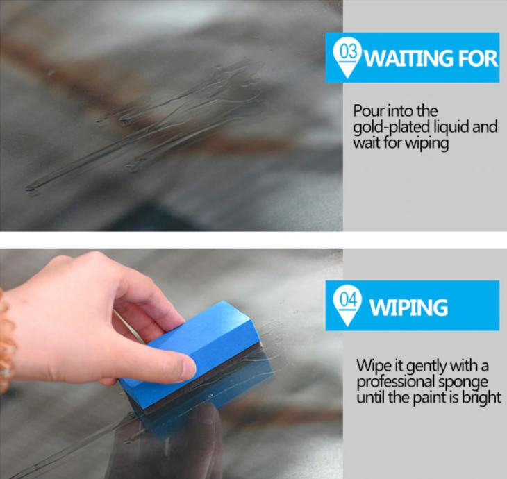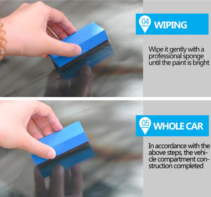 Nano čestice u tekućini odbijaju tekućinu od površine vašeg automobila.Tekućinu kap po kap izlijte na nježnu krpu koju zavijete oko priložene spužvice te nježno prebrišite automobil. Zaštitni premaz se stvara u nekoliko sekundi!