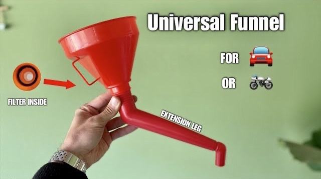 Lijevak za motore, aute i razne druge tekucine. N oblika je i stoga ga se moze koristit i na raznim nedostupnim mjestima gdje se sa obicnim ravnim ljevkom ne moze.