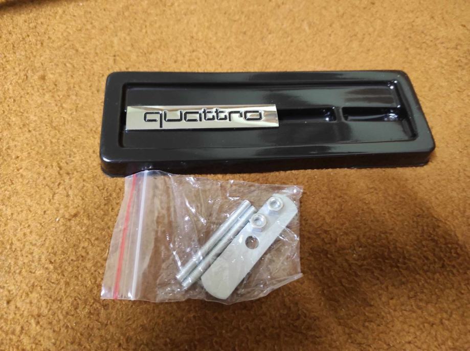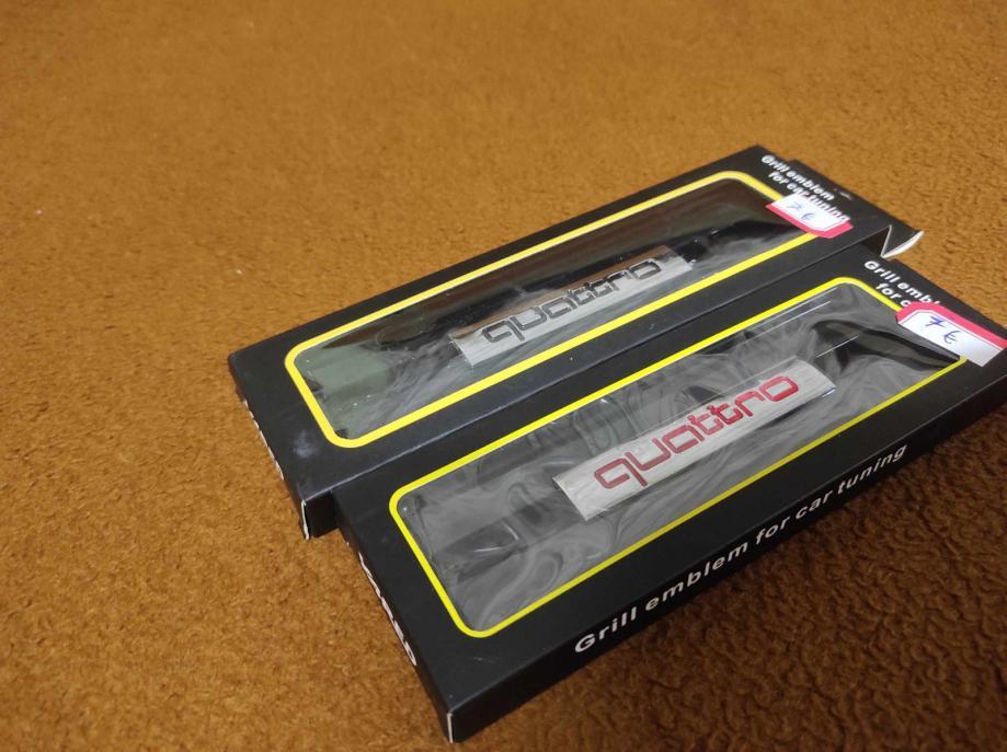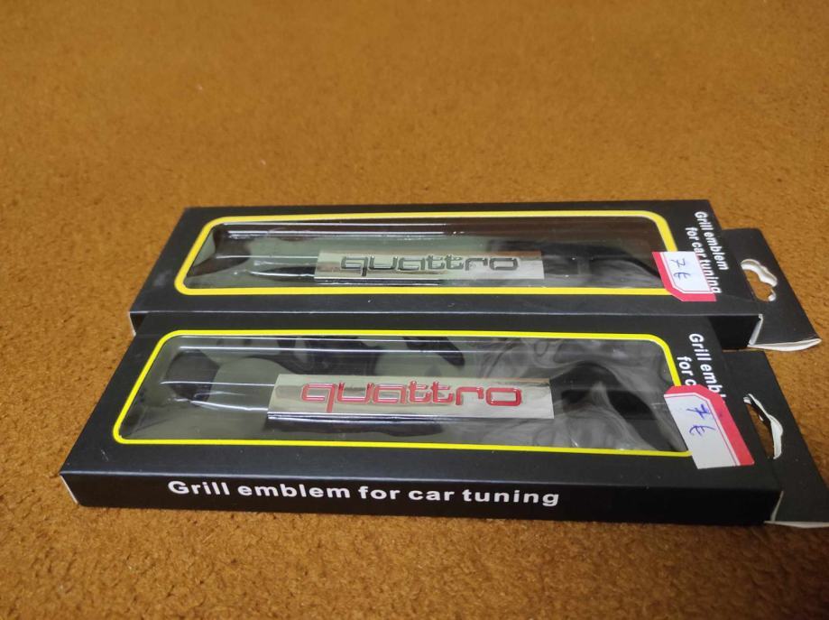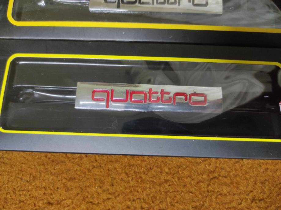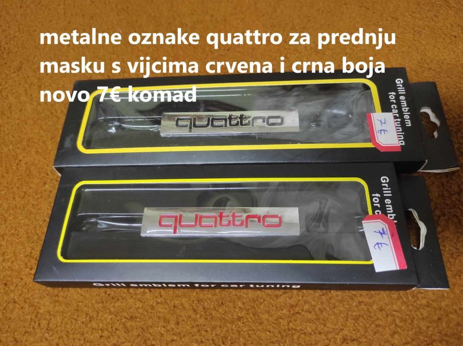 prodajem metalne oznake quattro za prednju masku s nosacem i vijcima u crnoj i crvenoj boji dimenzije na slikama cijena 7 eura komad fixno