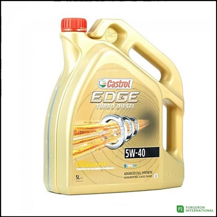 Motorno ulje Castrol Edge Turbo Diesel 5W-40 u pakiranju od 5L. Originalno ulje za Audi, Seat, Škoda i Volkswagen vozila. Proizvedeno u Velikoj Britaniji. Made in Great Britain - OEM.