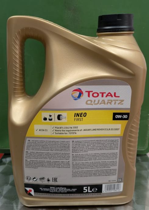 Prodajem motorno ulje 5 l, TOTAL Quartz Ineo First 0W30.