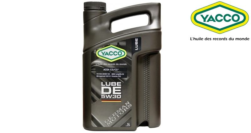 Yacco Lube DE SAE 5W30 je 100% sintetičko Longlife ulje sa 'Mid SAPS' tehnologijom za dizel motore (sa ili bez DPF-a) i benzinske motore (sa ili bez turbo punjača), dizajnirano za nova vozila (od Euro 4). Odobrila ga je većina njemačkih proizvođača automobila: Volkswagen grupa * (Audi, Volkswagen, Seat, Škoda), Porsche, BMW i Mercedes. Ovo mazivo je kompatibilno s mnogim drugim OEM motorima koji zahtijevaju SAE 5W 30 ACEA C3, API SP.