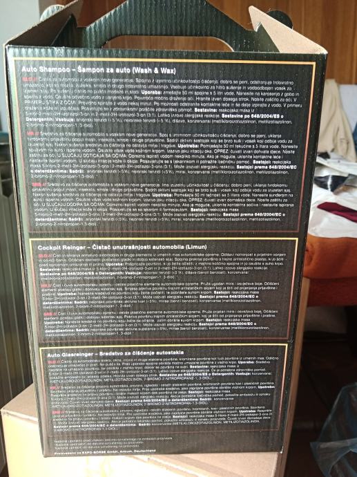 Trodjelni set, 1) sampon i wax, 2) ciscenje stakla 3) ciscenje unutrasnjosti i kokpita , novo u kutiji