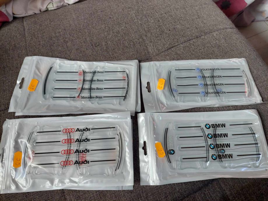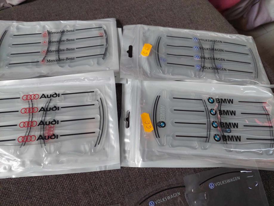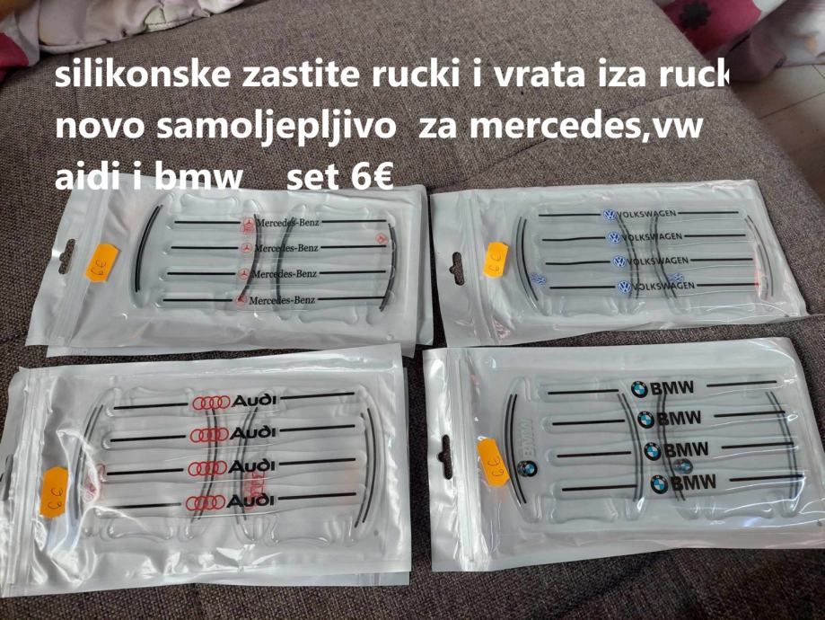 prodajem silikonske zastite rucki i iza rucki na vratima vozila za mercedes,bmw,audi i vw u setu se dobije 4 komada za rucke i 4 komada za iza rucki vidljivo na slikama cijena 6 eura po setu fixno