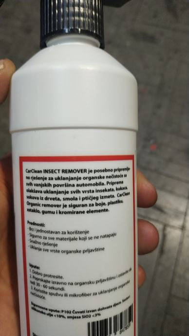 Insect remover je posebno pripremljeno rješenje za uklanjanje organske nečistoće sa svih vanjskih površina auta. Olakšava uklanjanje svih vrsta kukaca, insekata , sokova iz drveta, smola i ptičijeg izmeta.