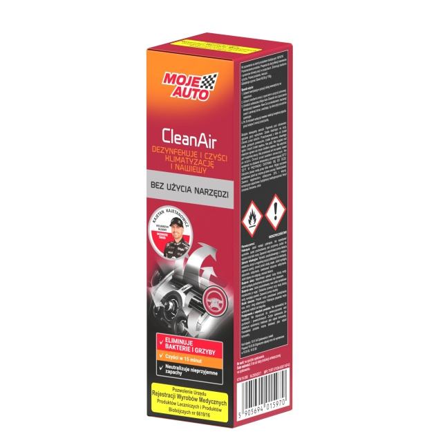 Svaki vlasnik automobila trebao bi redovito čistiti klima uređaj i ventilacijske otvore. Moje Auto CleanAir Vanilla je pripravak pripremljen za brzu dezinfekciju i osvježenje klima uređaja u bilo kojem automobilu. Zahvaljujući posebnoj formuli, proizvod ne zahtijeva nikakve alate, a cijeli postupak čišćenja traje samo četvrt sata! Vodite računa o svom klima uređaju kao profesionalac! Brzo, učinkovito i sigurno osvježite svoj automobil i riješite se mikroorganizama koji uzrokuju neugodne mirise.
