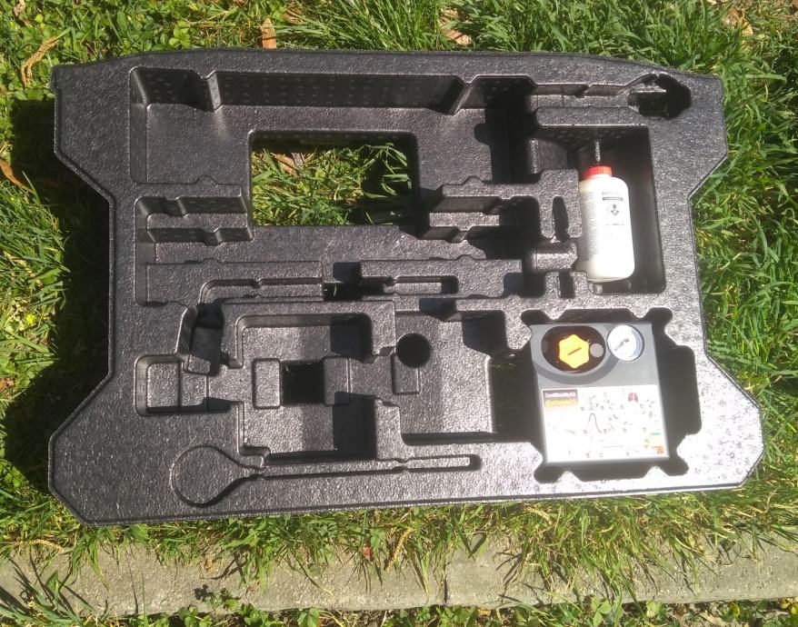 Suzuki set (Vitara 2019) za krpanje guma sadrži tekućunu za krpanje guma i kompresor. Može se koristiti za sva druga vozila.