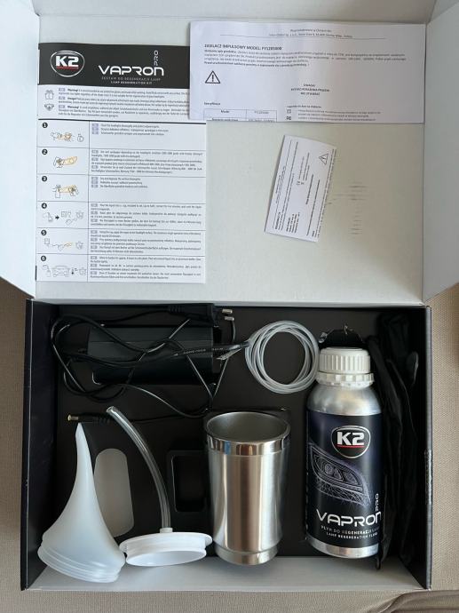 Pozdrav svima, prodajem K2 vapron set za polimerizaciju farova. Set za reparaciju uklanja ogrebotine, promjene boje i matiranje farova. Set je koristen samo jedan put za jedan far te je gotov nov. Vapron K2 set za obnovu farova sadrži: (sve kao na slikama)