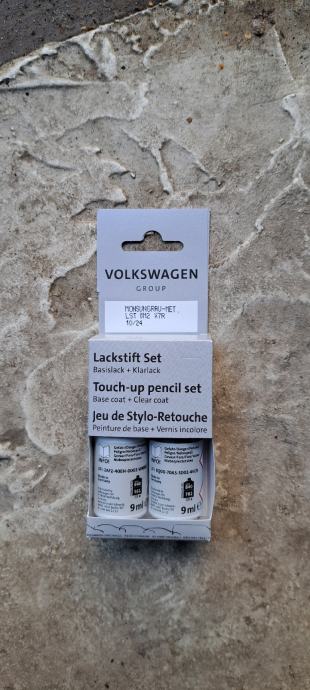 Lackstift, odnosno set lakova za korekciju manjih uloštećenja laka (udarci kamenčića, ogrebotine....). Boja je "monsungrau", a u našim krajevima kažu "miš siva metalik". Set sadrži i bezbojni lak za finiš, a kupljen je u lipnju 2022. Rok trajanja je najmanje do 2024. NOVO!!! U Zubaku je cijena 130 kn, prodajem za 100 kn.