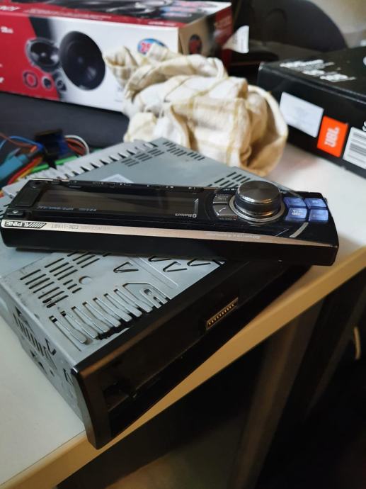 Ambalažu ne mogu pronaći, dolazi sa svim djelovima i kablovima (uključujući i njegov orginalni mikrofon za bluetooth pozive). Inače radi se o skupljem radiju sa odvojivim panelom, podržava bluetooth, auto kontrole, cd, usb uz izmjenjive boje osvjetljenja koji je u svoje vrijeme koštao blizu 2000kn.