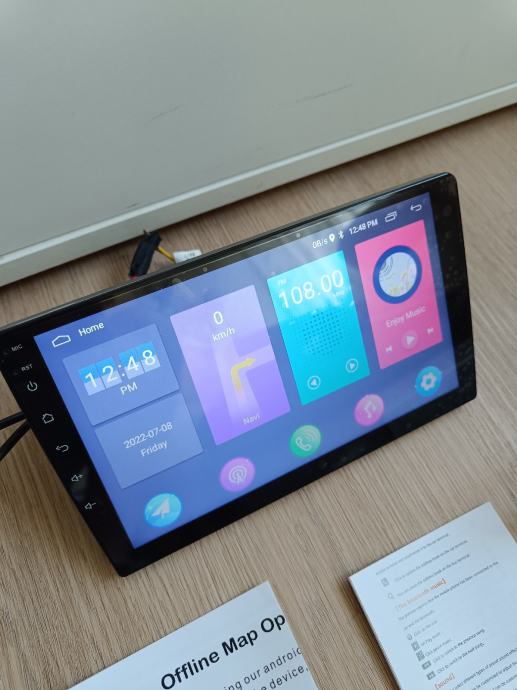 Dolazi sa svim kablovima, antenom za gps, metalnim limicima za ugradnju i uputama.