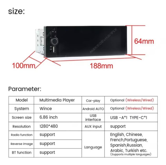 Android Auto 1 DIN NaviFly OD8 autoradio