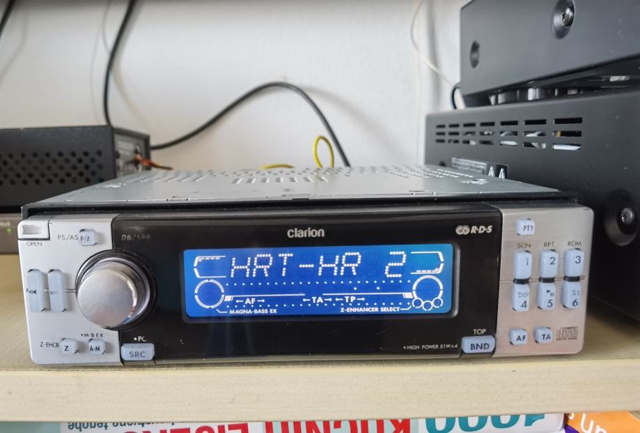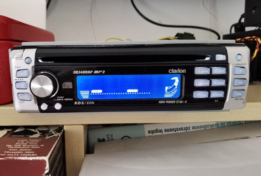 Clarion auto-radio je ispravan, očuvan, dolazi sa adapterom za montažu na električnu instalaciju u automobilu.