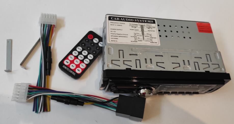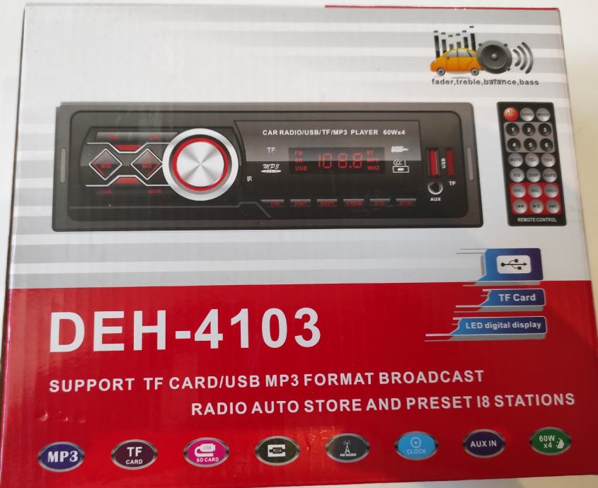 Potpuno nov, nekorišten i zapakiran. Ima LED ekran te omogućuje Bluetooth vezu a priložen je i daljinski upravljač. Ima USB i AUX ulaz koji služi za povezivanje mobitela ili ostalih uređaja.