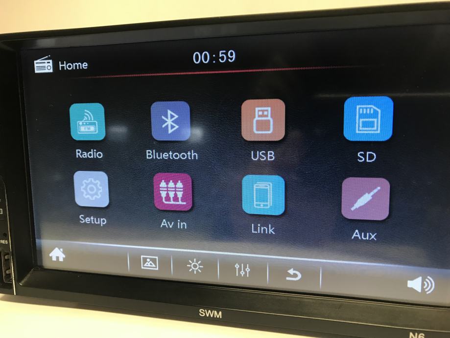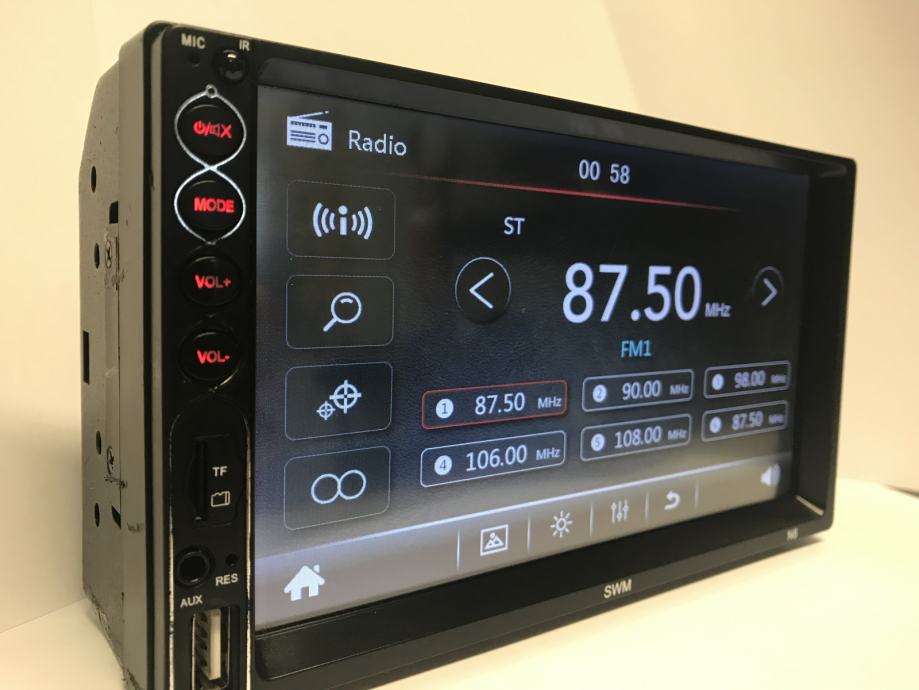 2 DIN Autoradio 7” SWM-N6, Bluetooth HF i audio BT, USB, LINK, AUX, SD card slot, AV-in, MP3, WMA, WAV, DVD, snaga 4 x 45W. FM stereo sa 18 memory radio stanica, boja osvjetljenja : promjenjiva zelena / narančasta / plava / crvena / ljubicasta. Uređaj korišten, potpuno ispravan.
