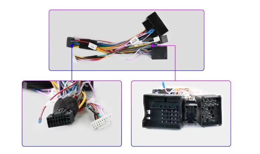 Priključci: mikrofon, CVBS (kamera), video out, sub woofer, video in, AUX R in, AUX L in, audio out L, audio out R, AMP contol, 2kom USB, canbus, GPS