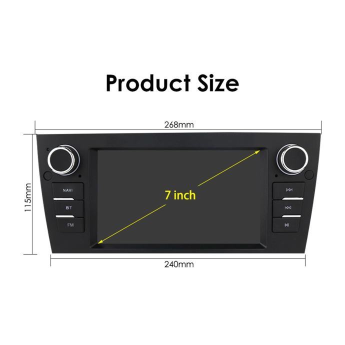 U kompletu: maska za BMW 3, autoradio 7” 2+32GB CP, 2xUSB kabel, 1xISO konektor za BMW, RCA input/output, antena konektor, konektor za kameru.