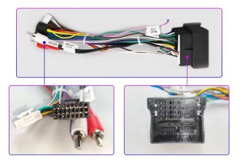 Priključci: mikrofon, CVBS (kamera), video out, sub woofer, video in, AUX R in, AUX L in, audio out L, audio out R, AMP contol, 2kom USB, canbus, GPS