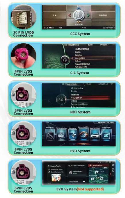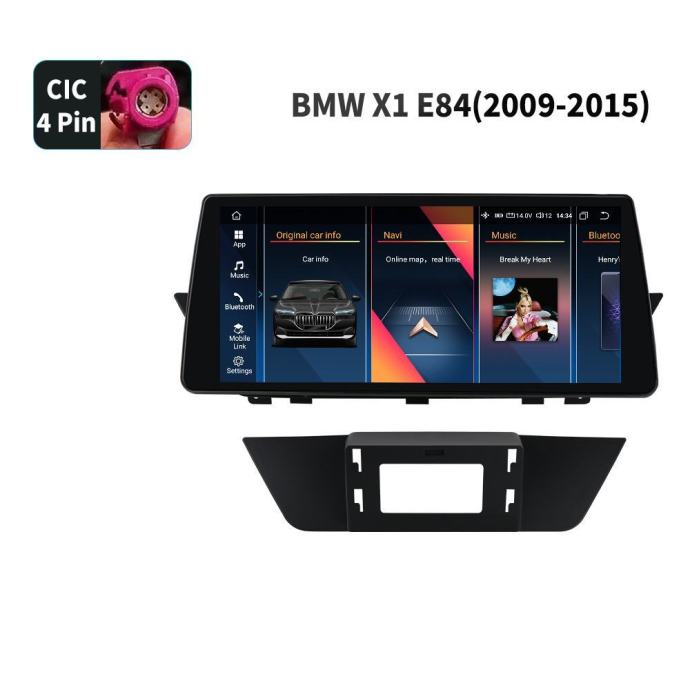 Napomena: ovaj model multimedije je isključivo za CIC platformu. Prema zadnjoj slici provjerite koji konektor imate u slučaju da je drugi konektor (CCC, NBT ili EVO) molimo kontaktirajte nas prije naručivanja. U pravilu se CIC u BMW X1 koristio od 10mj./2009 do 06mj./2015, ali svejedno najbolje je provjeriti. Ova multimedija podržava samo AUX izlaz originalnog auta – prema predzadnjoj slici u postavkama provjerite da li vaš radio podržava AUX izlaz. Svi konektori su plug and play te maska odgovara za BMW seriju X1, 09-15 godište. Za modele sa originalnim ekranom.