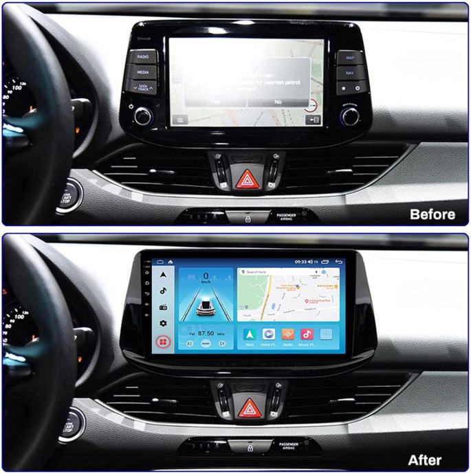 Multimedija android za Hyundai i30 2017-2022 sa navigacijom, koji podržava reproduciranje glazbe i videa. Podržava spajanje s Wifi-jem, Bluetooth handsfree, reprodukciju sa USB-a te audio streaming.