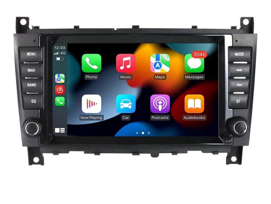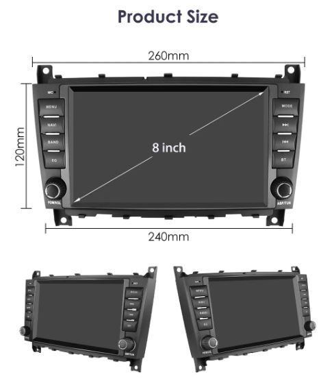 U kompletu: maska za Mercedes-Benz, autoradio 8” 2+32GB CP, 2xUSB kabel, 1xISO konektor za Mercedes-Benz, RCA input/output, antena konektor, konektor za kameru.