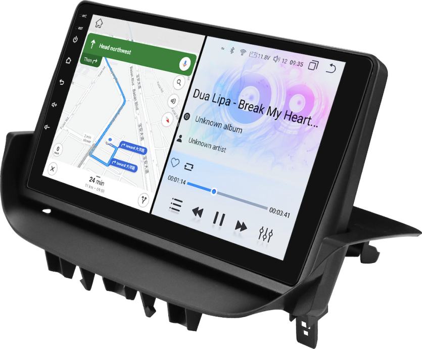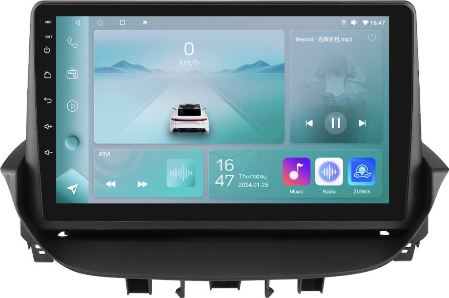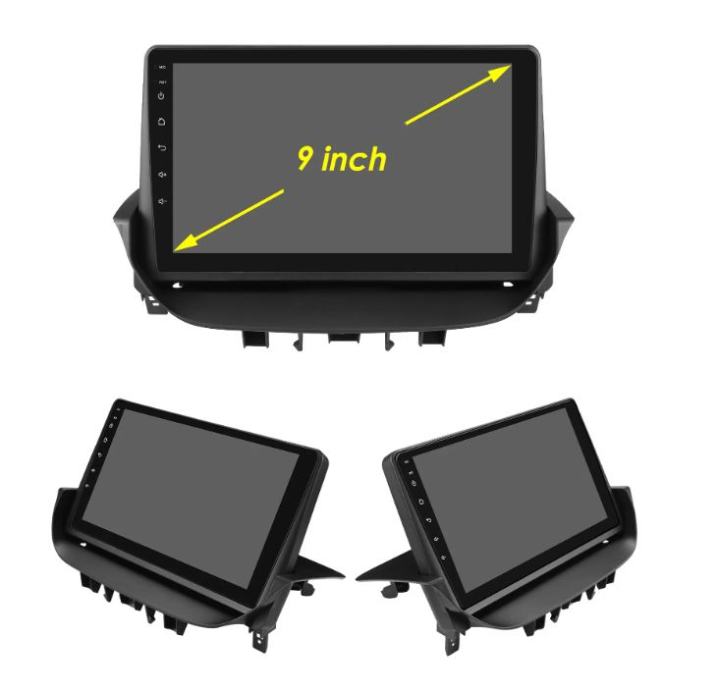 U kompletu: maska za Renault Megane, autoradio 9” jačine prema izboru, 2xUSB kabel, 1xISO konektor za Renault, RCA input/output, antena konektor, konektor za kameru.