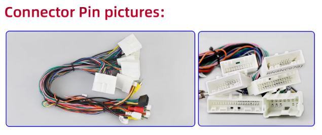 Priključci: mikrofon, CVBS (kamera), video out, sub woofer, video in, AUX R in, AUX L in, audio out L, audio out R, AMP contol, 2kom USB, canbus, GPS