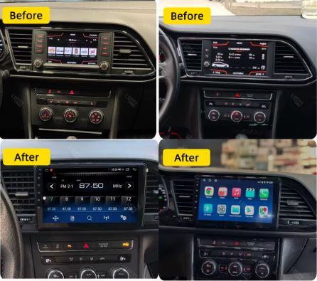 U kompletu: maska za Seat Leon, autoradio 9” jačine prema izboru, 2xUSB kabel, 1xISO konektor za Seat, RCA input/output, antena konektor, konektor za kameru.