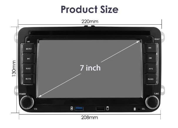 U kompletu: maska za Volkswagen, autoradio 7” jačine prema izboru, 2xUSB kabel, 1xISO konektor za Volkswagen, RCA input/output, antena konektor, konektor za kameru.