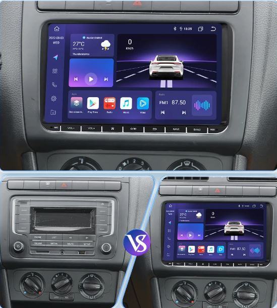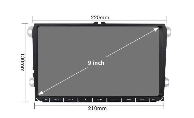 U kompletu: maska za Volkswagen , autoradio 9” jačine prema izboru, 2xUSB kabel, 1xISO konektor za Volkswagen, RCA input/output, antena konektor, konektor za kameru.