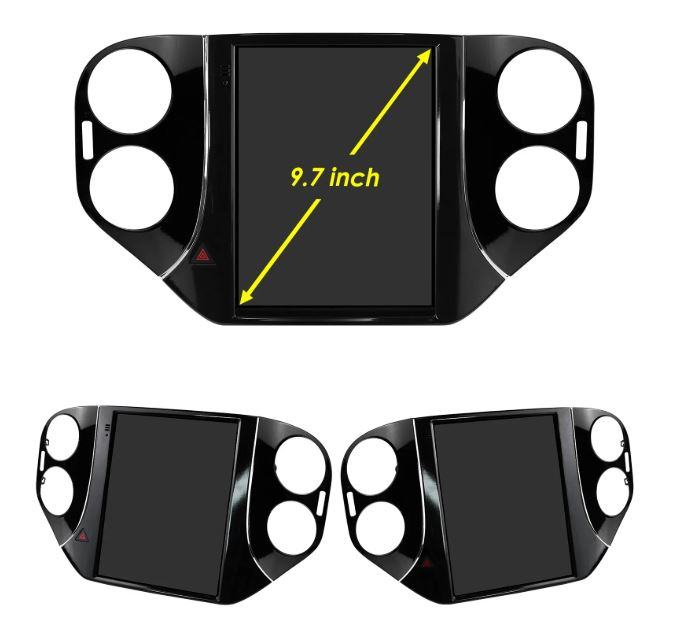 U kompletu: maska za Volkswagen Tiguan, autoradio 9,7” jačine prema izboru, 2xUSB kabel, 1xISO konektor za Volkswagen, RCA input/output, antena konektor, konektor za kameru.