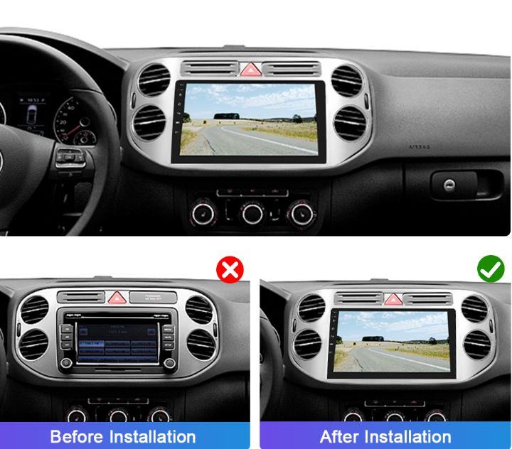 U kompletu: maska za Volkswagen Tiguan, autoradio 9” jačine prema izboru, 2xUSB kabel, 1xISO konektor za Volkswagen, RCA input/output, antena konektor, konektor za kameru.