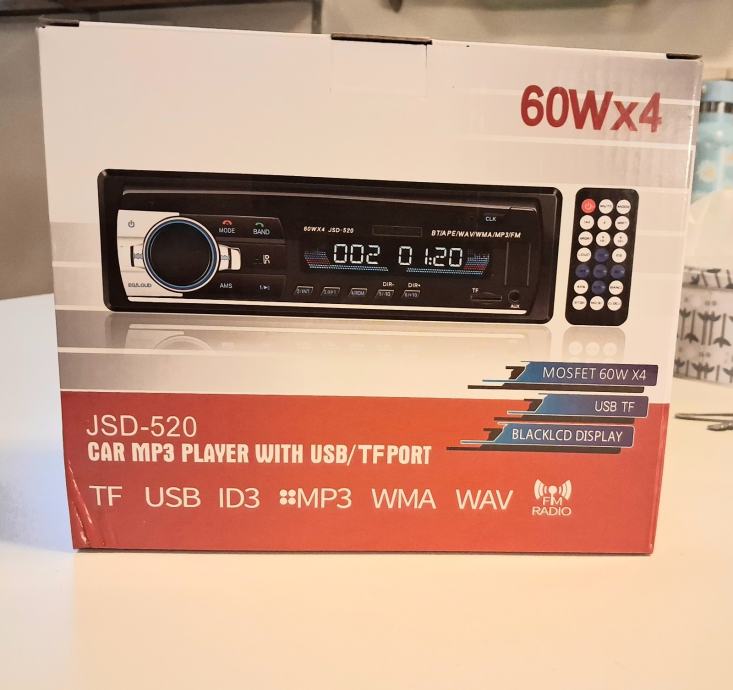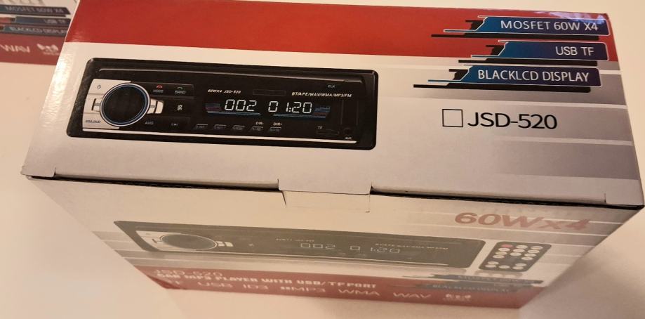 Novi JSD-520 autoradio s USB i MP3 podrškom, snage 60W x 4 kanala. Uređaj dolazi s praktičnim daljinskim upravljačem i kvalitetnim LCD zaslonom koji omogućava jednostavno korištenje tijekom vožnje.
