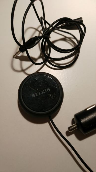 Prodajem Belkin AirCast Auto HandsFree uređaj. Uređaj se spaja na 12V automobilsku utičnicu i Aux ulaz.