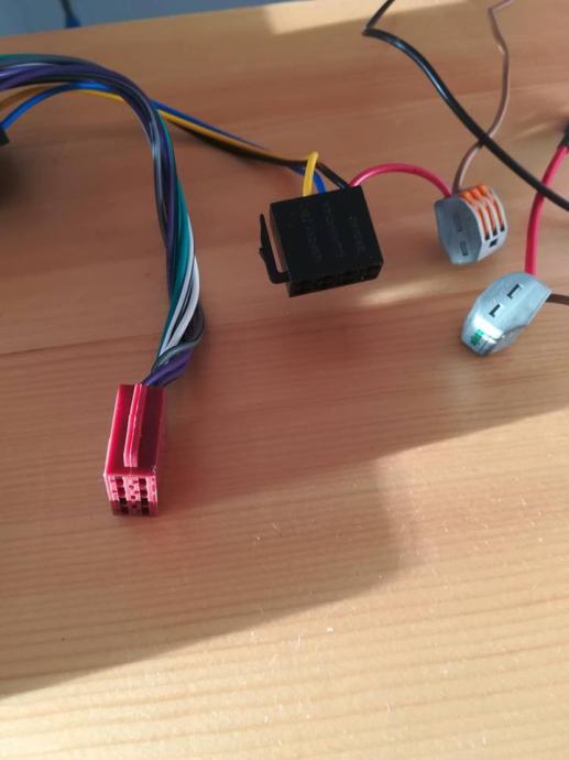 Kod spajanja vanserijskog radio uređaja potrebno je uzeti sa ploče sa osiguračima stalnih 12V koji služe za čuvanje memorije radio uređaja, taj kabel za spajanje također dolazi u kompletu.