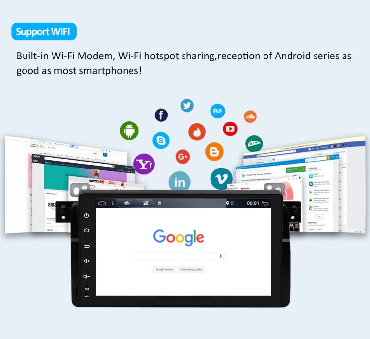 GPS + Radio+RDS + Bluetooth + A2DP + TELEFONSKI IMENIK + Punjenje mobitela preko radija + USB & SD + WiFi + AUX + Mirror Link + Mape + INTERNET (YouTube, Google, Facebook...) + HANDSFREE