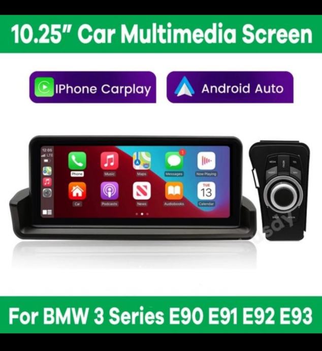 Originalan 2din RADIO ANDROID za BMW seriju 3 E90 E91 E92 i E93 zajedno s GPSom i navigacijom, WIFI konekcijom, Bluetooth, spajanje mobitela, Apple Carplay + ANDROID AUTO, originalna parking kamera (opcionalno), itd.