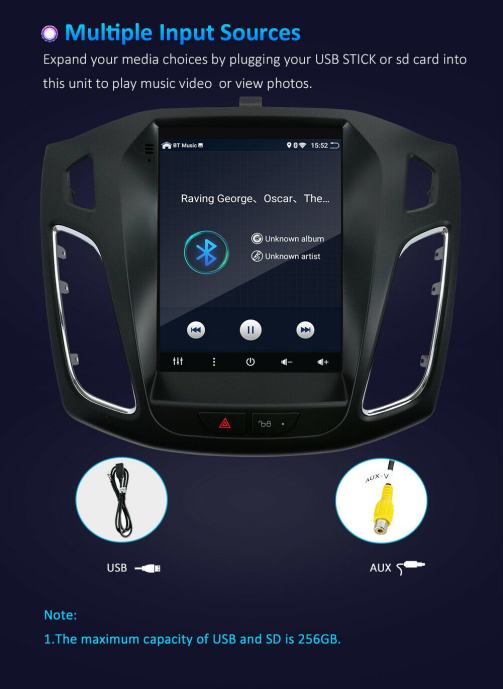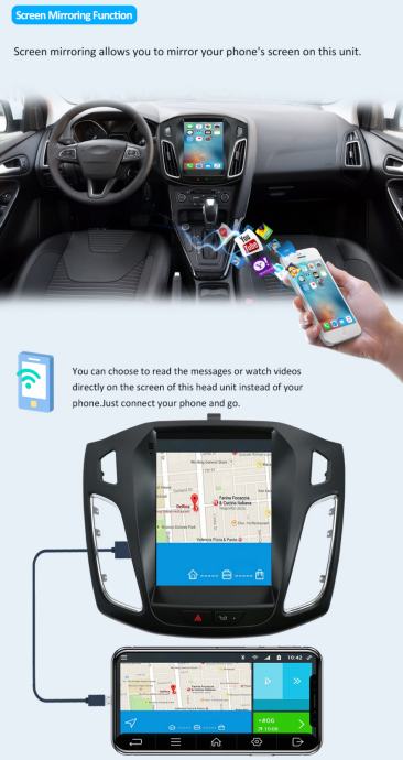 Originalan 2din radio za FORD FOCUS zajedno s GPSom i Navigacijom, WIFI konekcijom, Bluetooth, USB, spajanje mobitela. itd..