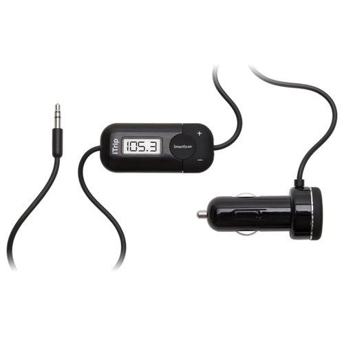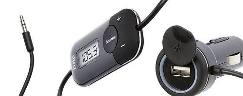 priključite ga na auto upaljač i spojite Aux na Iphone Ipod ,na njemu postoji Smartscan koji traži slobodne FM frekvencije. kad ju nađe na svom auto radiju podestite na tu frekvenciju i slušate svoj MP3 sa Iphonea