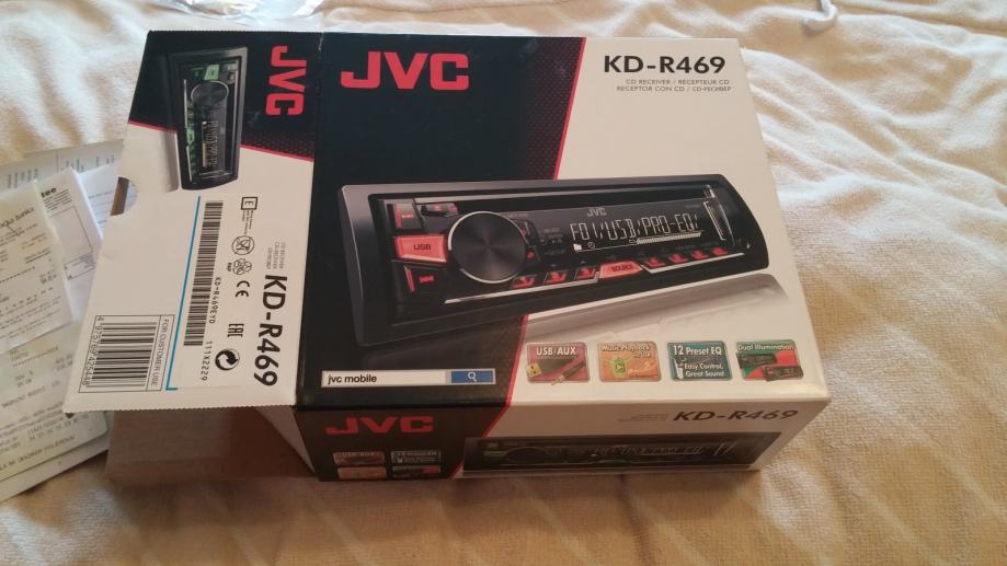 Prodaje se JVC KD-R469, kao nov, korišten 2 mj., kupljen novi u Pevecu krajem 10.mjeseca. Prvi vlasnik. Garancija 2 godine, kutija, utori usb, aux, mogucnost upravljanja preko android aplikacije. Best buy što se tice uloženo/dobiveno!