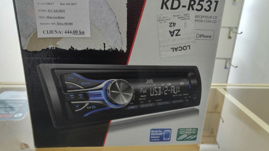 Auto radio cd usb jvc kd-r531 u odlicnom stanju. Komplet u kutiji sa kavezom i euro konektorom. Pod garancijom do 22.10.2017.
