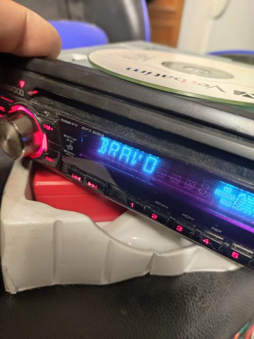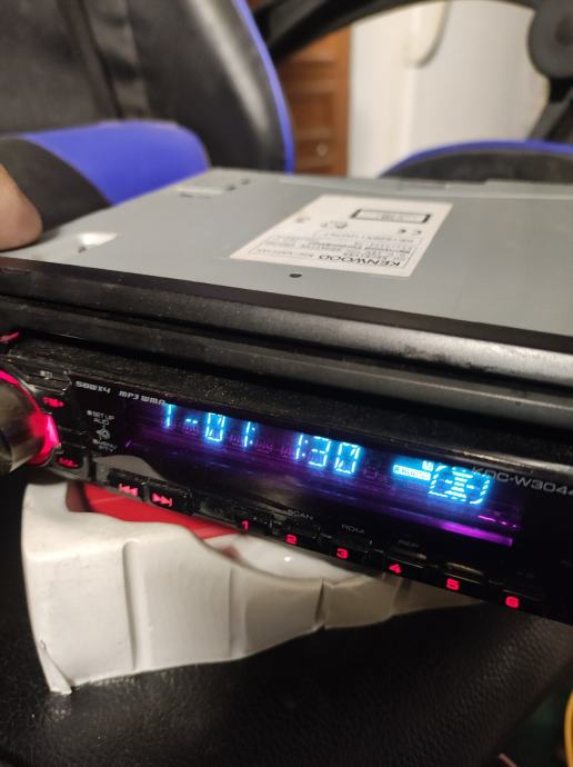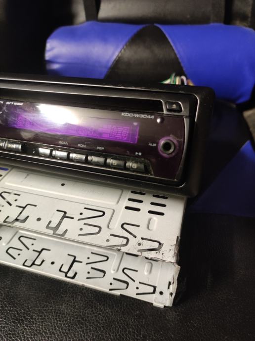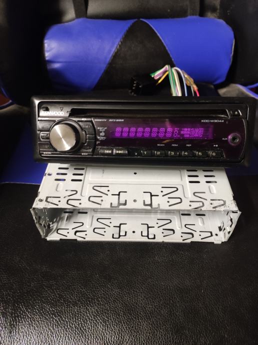 Kenwood KDC-W3044AY auto CD/MP3 player. Uređaj je potpuno ispravan i radi kako treba. Ima ljubičasti zaslon i standardne funkcije za reprodukciju CD-a i MP3 formata.4x50,RDS, AUX. Dolazi s metalnim kućištem za ugradnju i priključnim kabelima. Pogodan je za standardnu DIN ugradnju u automobil.