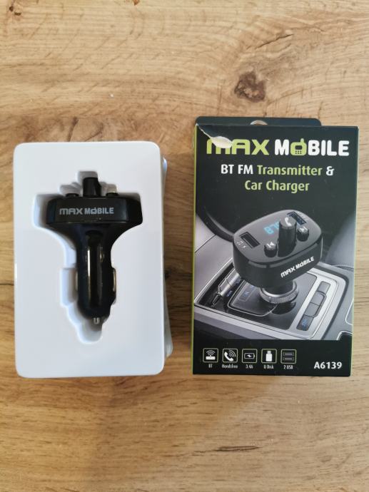 Odličan MAX MOBILE FM ODAŠILJAČ 3U1 (Bluetooth Handsfree + FM transmiter + 3.4A punjač 2XUSB), bežično prenosi telefonske pozive i glazbu s mobitela na auto audio sustav. Podržava puštanje muzike preko USB-a, a ima dvostruki USB utor total 5V/3.4A (može puniti dva mobitela istovremeno).