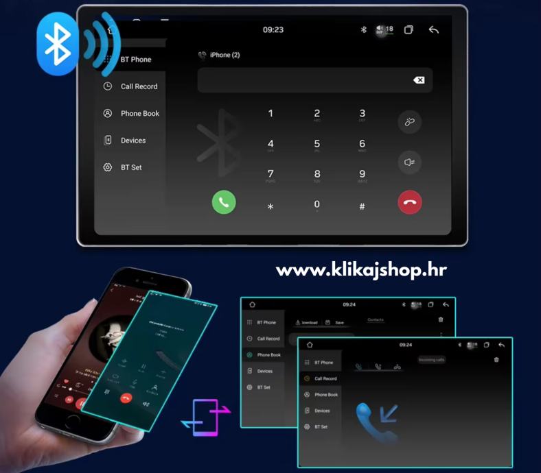 ✔️ BLUETOOTH: mogućnost reproduciranja glazbe bežično preko mobitela ili odgovaranje na pozive bez potrebe za posezanjem za mobitelom tijekom vožnje ( moguće prebaciti telefonski imenik na radio )