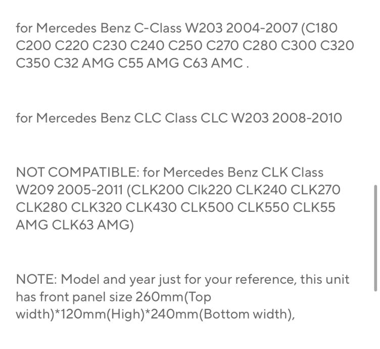 Mercedes Benz CLC Class CLC W203 2008-2010