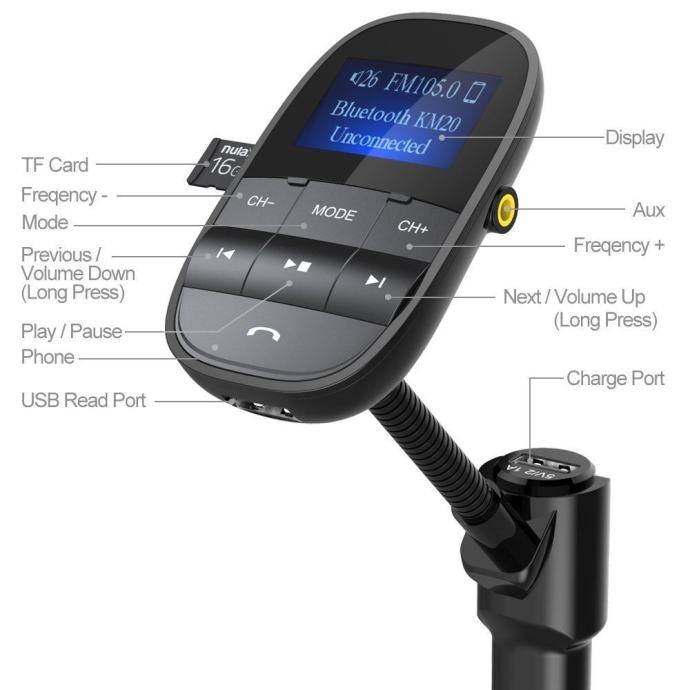 Više detalja pročitajte na stranici proizvođača: http://www.nulaxy.com/nulaxy-2017-bluetooth-fm-transmitter-sleep-shuffle-wireless-hands-free-car-kit-w-usb-charger-play-usb-flash-drive-micro-sd-card-aux-input-output-1-44-inch-display-km20-black.html