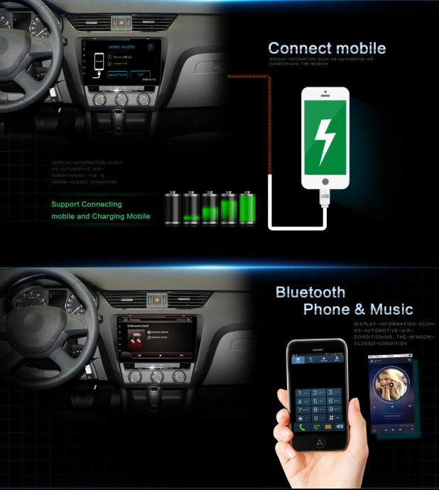 GPS + Radio+RDS + Bluetooth + A2DP + TELEFONSKI IMENIK + Punjenje mobitela preko radija + USB & SD + WiFi + AUX + Mirror Link + MAPE